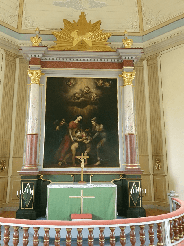 Sedan går vi fram till altarrummet och de får möjlighet att fördjupa sig i altartavlan.[18]
