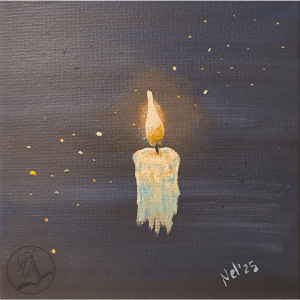 Nästa delmoment är att var och en får ett värmeljus och bär det till ett bord mittemot altaret och ställer det på bordet. Det hjälper också att landa i rummet.